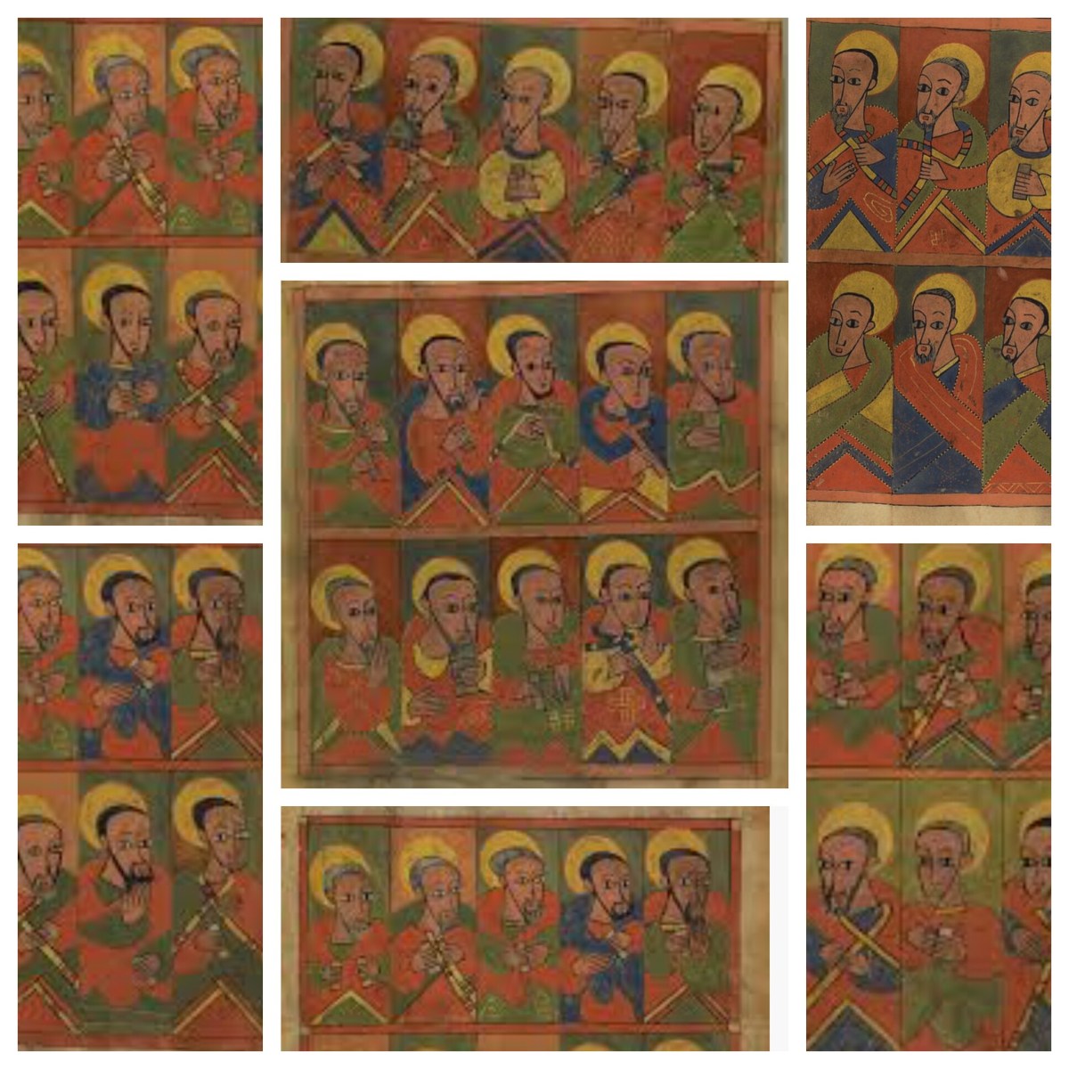 The images come from The Seventy-two Disciples (Unknown artist, Provenance Ethiopia, Dated about 1480 – 1520; Tempera on parchment).