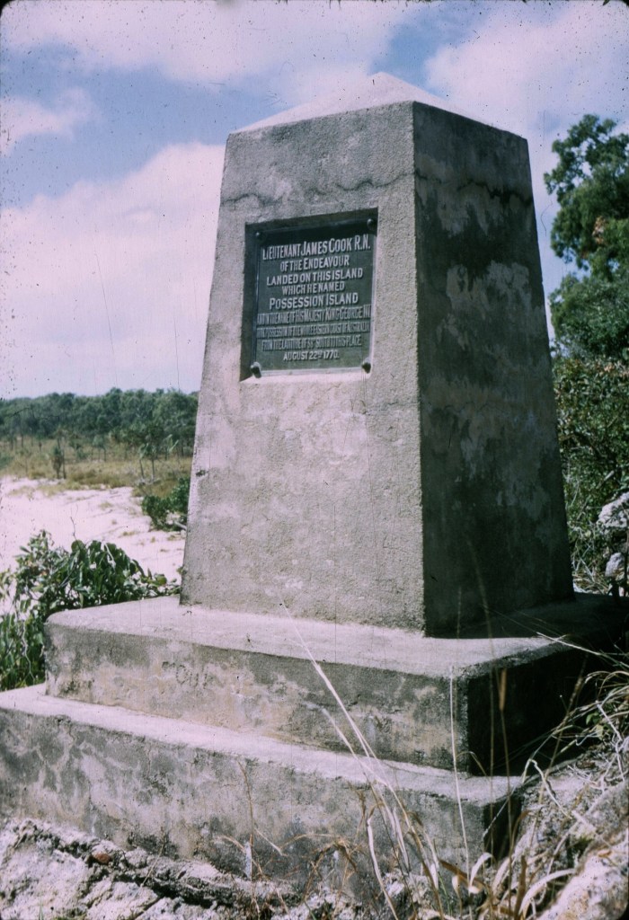 A monument in recognition of this event has been erected on the headland above the beach where Cook raised the flag in 1770. It states: