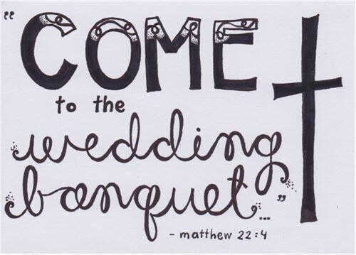 I always enjoyed singing that song, back in the days when we were able to sing when we gathered together for worship. It came to mind as I thought about the parable of the banquet that appears in the Lectionary, as the Gospel reading, this coming Sunday (Matt 22:1-14).