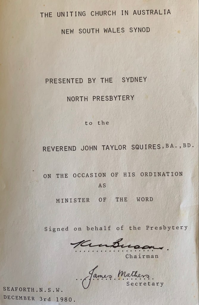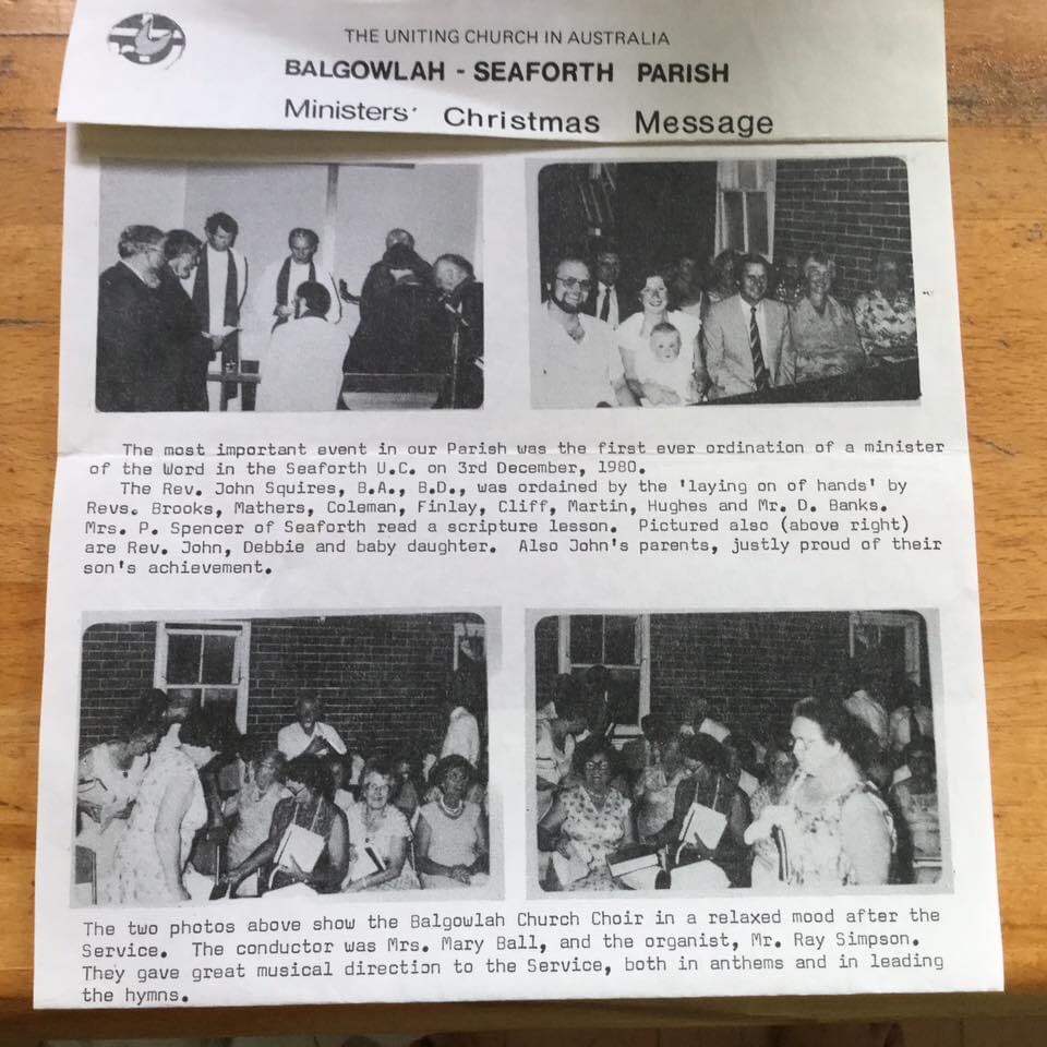 On this day forty years ago (3 December 1980), I was ordained to the Ministry of the Word in the Uniting Church, in my home church in Seaforth. Forty years!!!