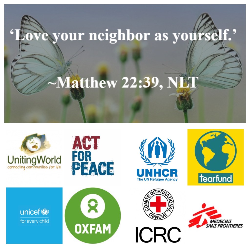 We can assist by supporting UnitingWorld, Act With Peace, UNICEF, UNHCR, Oxfam, TEAR Fund, Red Cross, Medicins Sans Frontièrs, or our choice of another reputable organisation that works on the ground in third world countries. It’s an integral part of being faithful followers of Jesus.