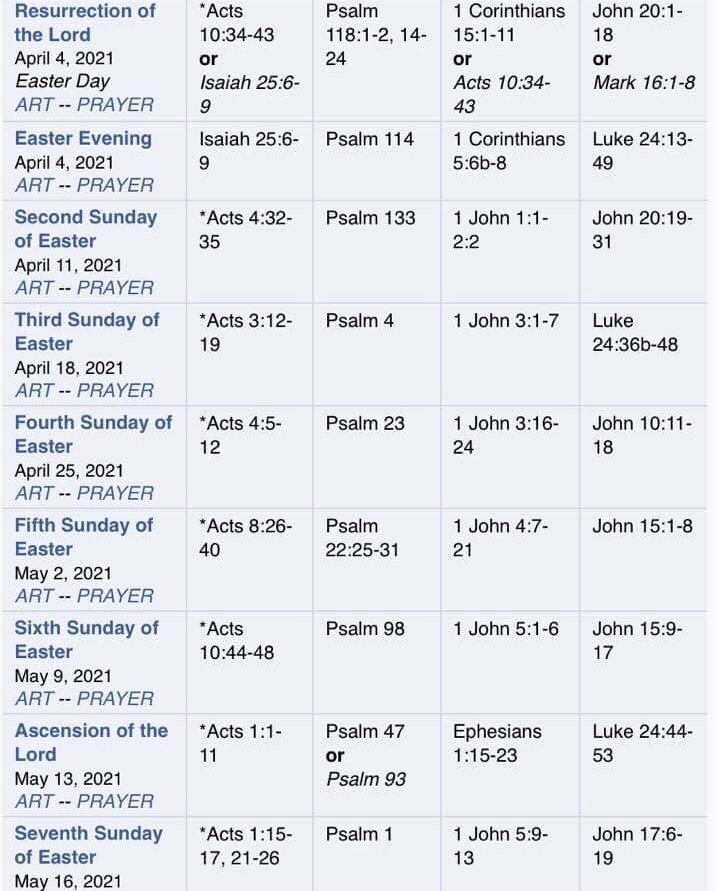 During the weeks that stretch out after Easter Sunday, we are in the season of the year (in the church calendar) that is called, simply, Easter. This coming Sunday will be the second Sunday in Easter (the second of seven, running through to the middle of May). During this season, the lectionary we use replaces the first reading from Hebrew Scripture with sections from the book of Acts—the second of two volumes attributed to Luke.