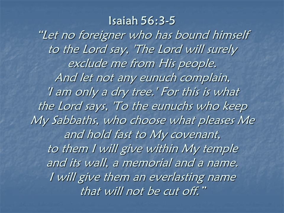 For thus says the LORD: To the eunuchs who keep my sabbaths,