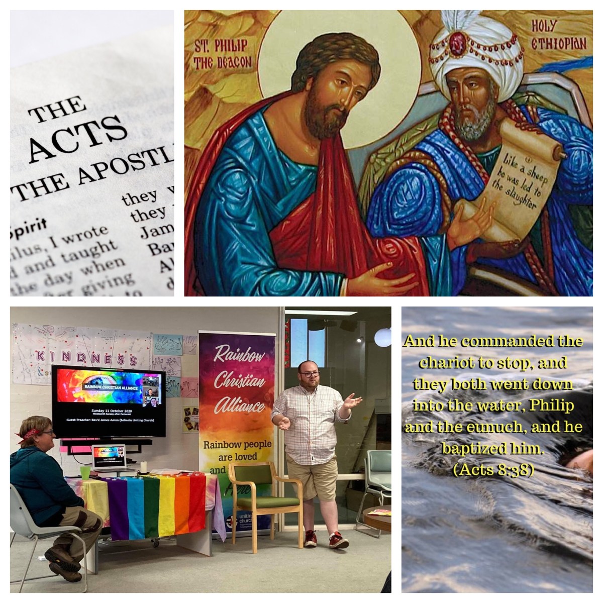 So this is the man who was baptised by Philip during his wilderness travels: a man on the edges, out of place, not fitting the expected “normal” categories. “What is there to prevent me from baptising you?”, Philip asks the man who has read scripture, asked questions, received answers, engaged in deepening engagement with the Gospel—and then, was baptised, dunked into the water, welcomed into the community of faith that was shaped by the teachings and stories of Jesus of Nazareth (8:36-38).
