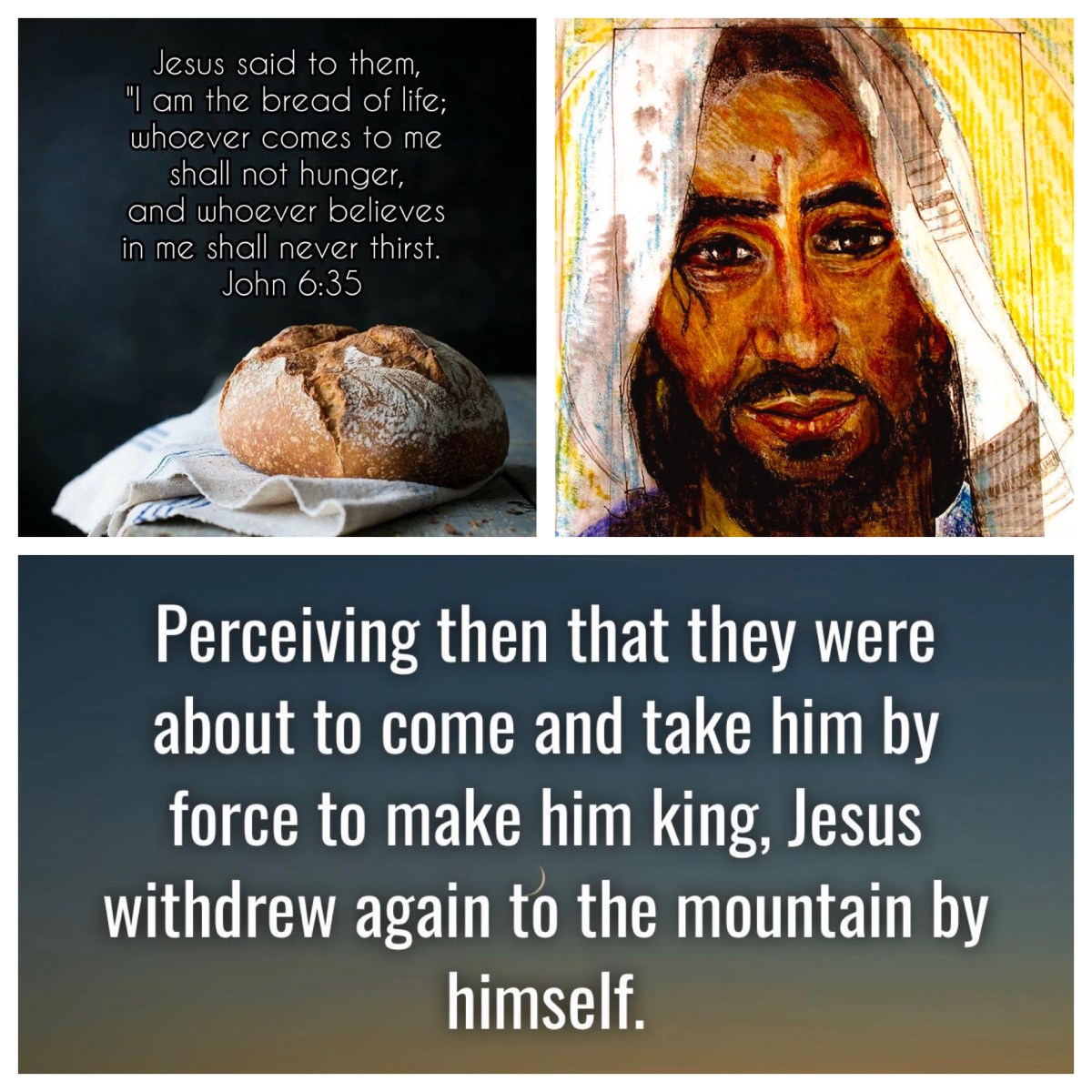 Immediately, however, it turns sour: “when Jesus realized that they were about to come and take him by force to make him king, he withdrew again to the mountain by himself” (6:15).