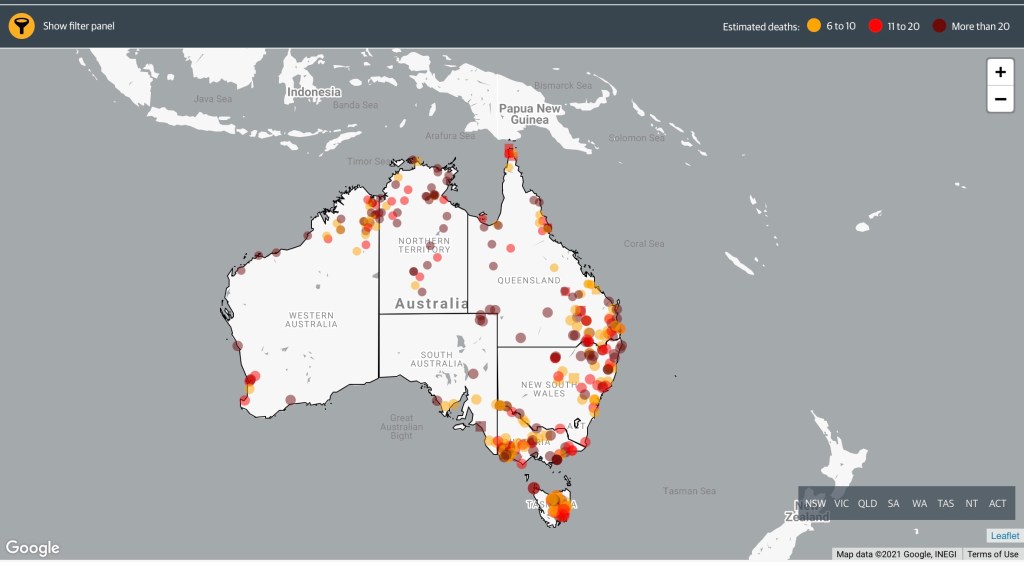 The map is interactive. The number of massacres that were perpetrated by ordinary people—not soldiers, not government officials—is truly horrifying.