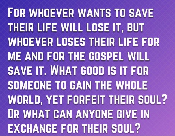 Then, Jesus specifies the sense of shame that is involved in “taking up your cross” and “losing your life”, but he turns the tables as he declares that “those who are ashamed of me and of my words in this adulterous and sinful generation, of them the Son of Man will also be ashamed when he comes in the glory of his Father with the holy angels” (8:38).