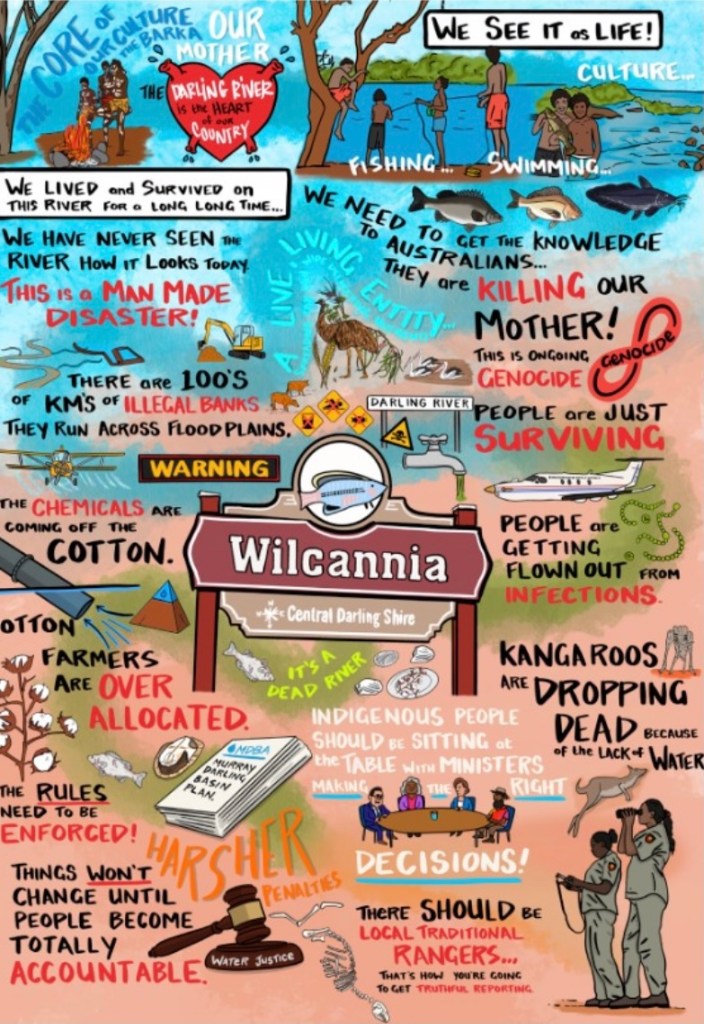 Acknowledgement: This article was prepared by members of the Water Justice Hub and initiated on the unceded Country of the Ngunnawal and Ngambri people that includes the upper Murrumbidgee(Big Water) River. It responds to the mismanagement of the Barka (Lower Darling) River that is in the Country of the Barkindji (People of the Barka).