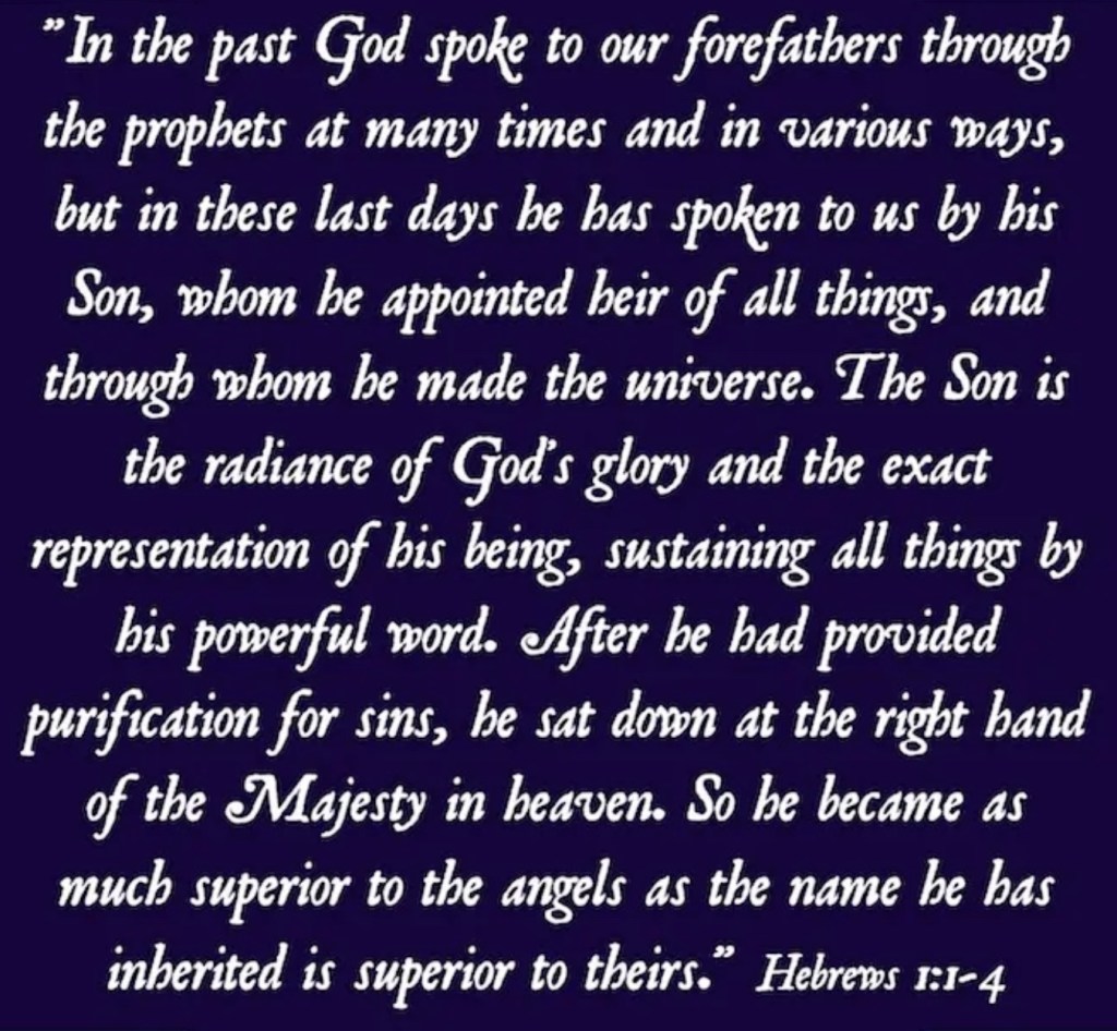 The verses portray a continuing relationship between God and humanity, which has come to a point of fulfilment in “a Son”. What is claimed of this Son has an all-encompassing scope. A number of images are used, pointing to other sections of New Testament texts where traditional Jewish ideas are pressed into the service of proclaiming Jesus.