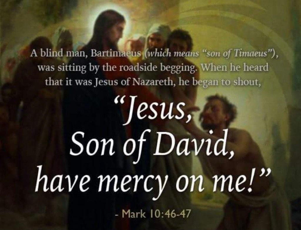The man sits on the ground, beside the road leading into Jericho. Sensing what was happening, who was passing by, what was being spoken about; unable to use his eyes, he was undoubtedly attentive through his listening ears, through the sounds he could hear, as well as the fragrances he could smell. Because of this, he knew the identity of the person passing by, so he calls out with confidence, “Jesus of Nazareth, Son of David, have mercy on me” (Mark 10:47).