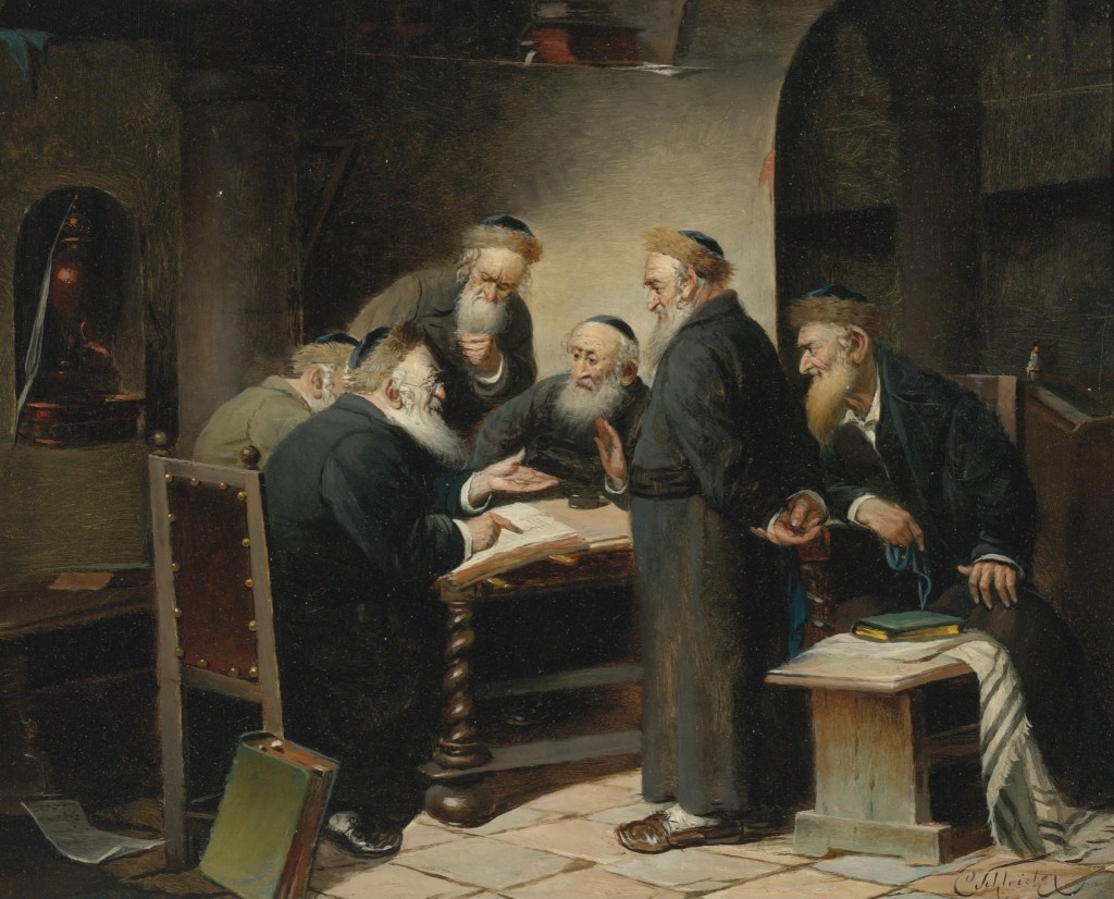 The scene is similar to a Jewish tale that is reported in the Babylonian Talmud, a 6th century CE work. In Shabbat 31a, within a tractate on the sabbath, we read: “It happened that a certain non-Jew came before Shammai and said to him, ‘Make me a convert, on condition that you teach me the whole Torah while I stand on one foot.’ Thereupon he repulsed him with the builder’s cubit that was in his hand. When he went before Hillel, he said to him, ‘What is hateful to you, do not to your neighbour: that is the whole Torah, the rest is the commentary; go and learn it.’”