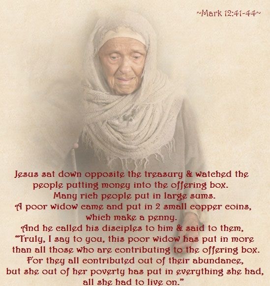 By highlighting the widow, Jesus refers to the well-established strand within the legal and prophetic and strands of Hebrew Scriptures which underlined the importance of caring for widows, amongst others. According to Torah, the widow and the fatherless child were to included along with the sojourner in celebratory moments in Israel—when tithing (Deut 14:28–29), at the Feast of Weeks (16:9–12) and the Feast of Booths (16:13–15), when gleaning (24:19–22), and when tithing once more (26:12–13).