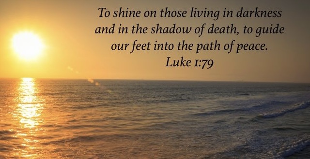 “Blessed be the Lord God of Israel, for he has looked favourably on his people and redeemed them. By the tender mercy of our God, the dawn from on high will break upon us, to give light to those who sit in darkness and in the shadow of death, TO GUIDE OUR FEET INTO THE WAY OF PEACE” (1:68–79).