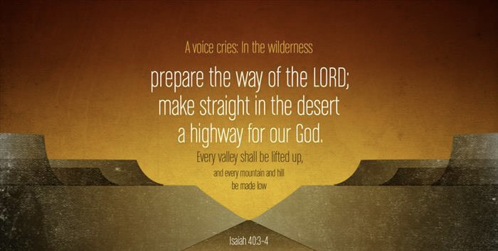 Immediately after this, the prophet declares, “A voice cries out: ‘In the wilderness prepare the way of the Lord, make straight in the desert a highway for our God.’” (Isa 40:3).