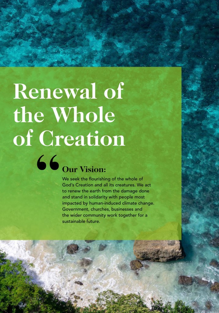 The church seeks the flourishing of the whole of God’s Creation and all its creatures, in which “we act to renew the earth from the damage done and stand in solidarity with people most impacted by human-induced climate change”. To achieve this, government, churches, businesses and the wider community need to work together for a sustainable future.