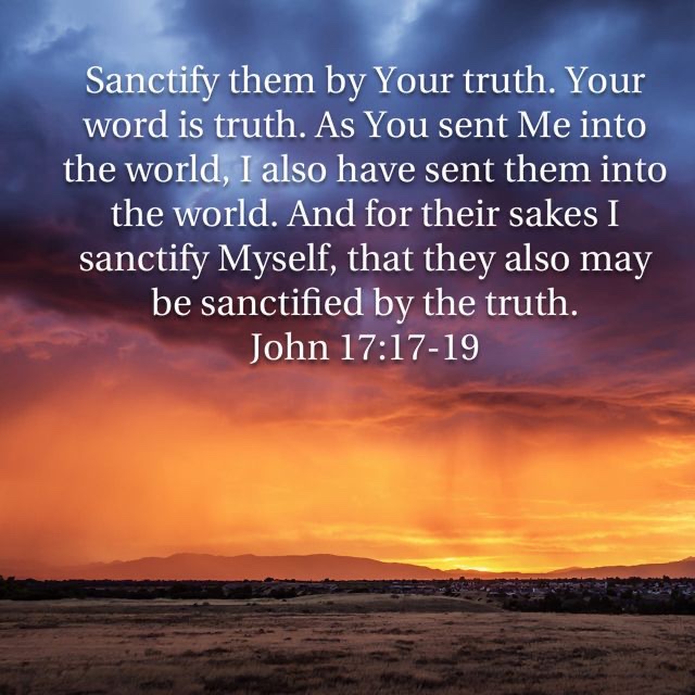 Sixth, the Son makes known the Father to the world (17:7–8). Seventh, the Father has sanctified the Son; while he was “in the world” (17:11), the Son prays to the Father that he has “made your name known” to those he has gathered (17:6), by giving the words that are from God (17:8,14). Through this process, the Son is sanctified (17:19).