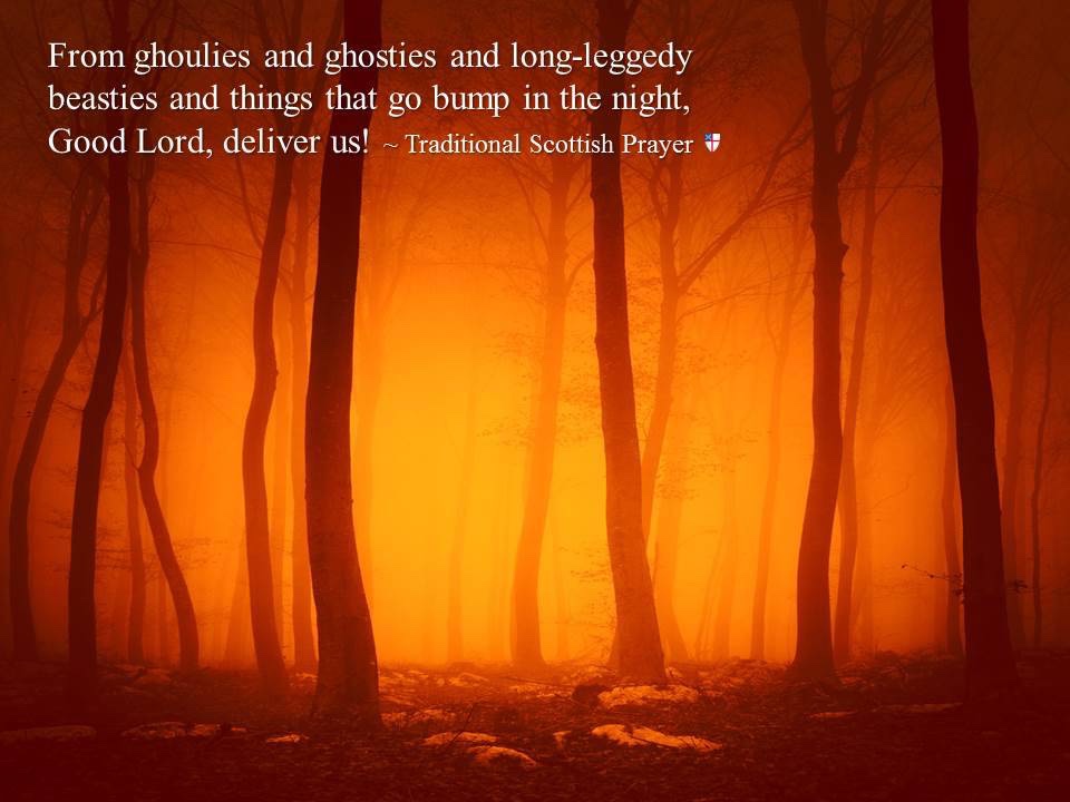 As a church, must develop this new narrative, this story of hope, metanoia and courage. We must take risks for the gospel, and not allow the ghosts of the past or the unfulfilled future to rob us of these things. And we must continue to pray, From ghoulies and ghosties / and long-leggéd beasties / and things that go bump in the night, / Good Lord, deliver us. Amen.