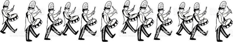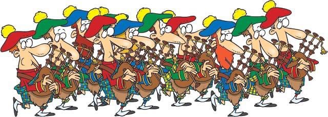 Which brings us to the eleventh day of (the season of) Christmas. On Day Eleven we meet eleven pipers piping. So perhaps this comes from a Scottish variant (like day one comes from the French version). Perhaps the Scots packed their song full of food? In this, the gifts would include twelve alka seltsers, eleven Blue Lagoons, ten creme de menthe, nine vodka and limes, eight nips of whisky, seven rum and cokes, six Carlsberg specials…you get the picture? (Yes, I know, this is becoming quite speculative!!)