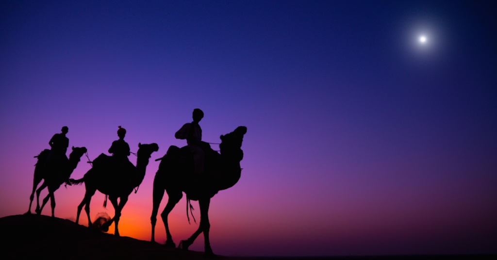WE TRAVERSE AFAR: presumably on camels, the deluxe form of transportation of the time … although ………
