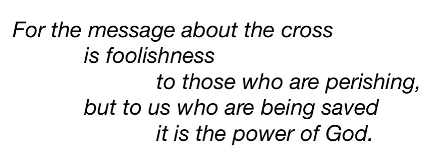 So, in verse 18, the last verse of the selection offered for this Sunday, Sosthenes and Paul sound out the key theme of this letter, which is about the cross of Christ: “foolishness to those who are perishing, but to us who are being saved it is the power of God” (1 Cor 1:18). The verses immediately following develop this motif of the paradox inherent in the cross with rhetorical finesse. (See next week’s blog.)
