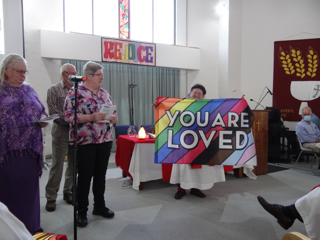 During the service, Sharon was welcomed as she joins the team of the Rev. Elizabeth Raine, Minister in placement, and the Rev. Margaret Middleton, the Tuggeranong Minister-in-Association. She was charged for her life as an ordained minister by her former minister, the Rev. David Thiem, and presented with a colourful rainbow stole by the congregation.