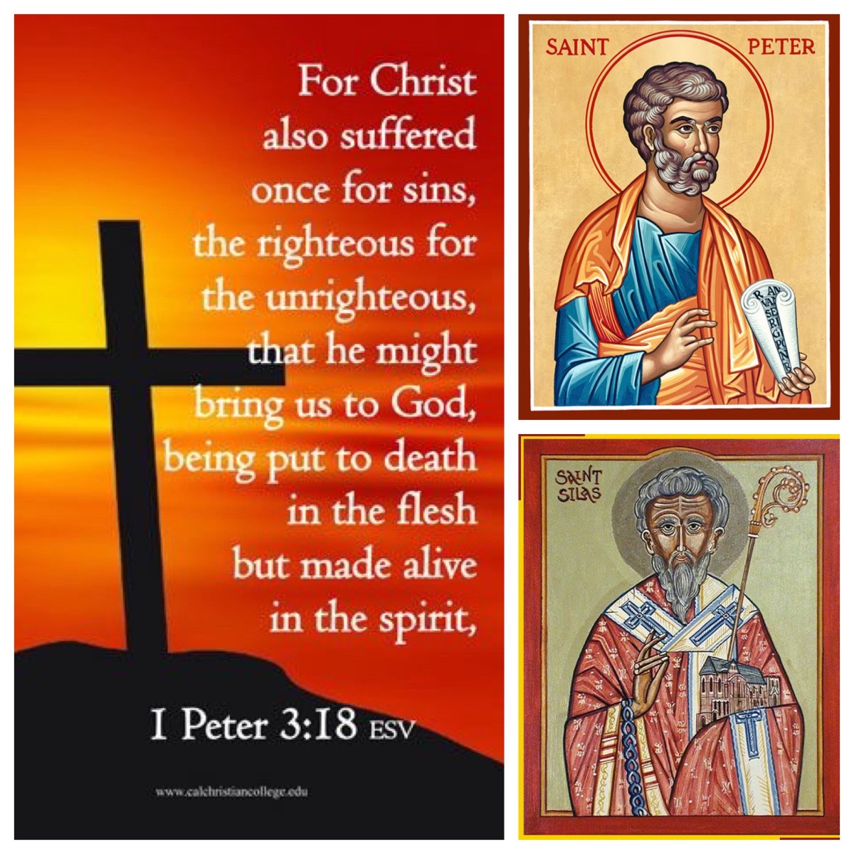 Continuing our reading from 1 Peter during this Easter season, the lectionary this week offers a section dealing with suffering (1 Pet 3:13–22). The reality of the suffering which is being experienced by believers is a constant refrain in this letter. It is noted briefly in the opening blessing (1:6–7) and described in more detail in this section, as well as four other occasions (2:19–20; 3:13–17; 4:1–2; 4:12–19; 5:6–11).