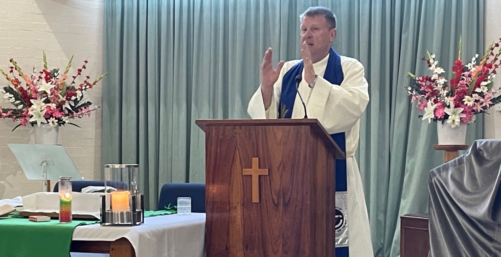 The mural was the idea of the Rev. Elizabeth Raine, one of the ministers in placement at Tuggeranong. One of the mission groups that were established early in her ministry (in 2019) worked through the process of conceptualising the idea, fundraising to finance the mural, engaging the Congregation with the proposal, and negotiating with the artist. Some funding came from the Synod, other funding came from a community grant. The work was mostly completed just two months ago.