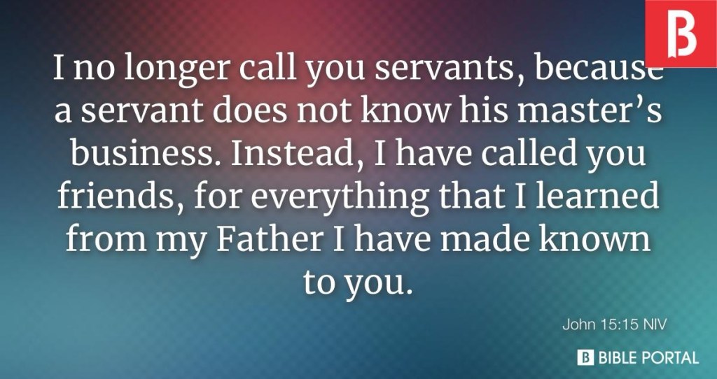 “You are my friends”, Jesus says, “if you do what I command you” (15:14). He tells his disciples, “I do not call you servants any longer, because the servant does not know what the master is doing; but I have called you friends” (15:15). Where does this valuing of friendship come from?