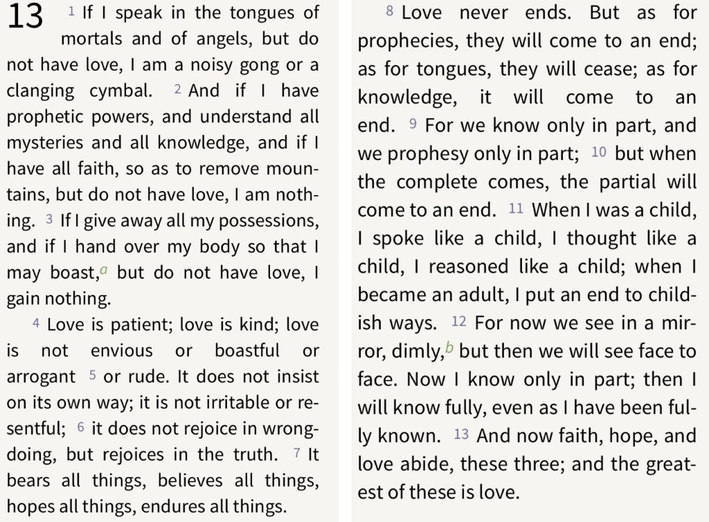 Jesus then continues with the instruction to his disciples, “as the Father has loved me, so I have loved you; abide in my love” (15:9), continuing with the injunction, “if you keep my commandments, you will abide in my love, just as I have kept my Father’s commandments and abide in his love” (15:10).
