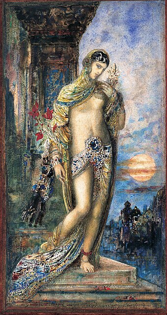 The explicit nature of the relationship is continued in the ensuing poem of the princess; “I had put off my garment”, she says; “I had bathed my feet … my beloved thrust his hand into the opening and my inmost being yearned for him” (5:4). So, she says, with her fingers and hands dripping, “I opened to my beloved” (5:6). But he had disappeared; she was “faint with love” (5:8)—and then, “my beloved has gone down to his garden, to the bed of spices, to pasture his flock in the gardens and to gather lilies” (6:2). He flatters her; “you are beautiful as Tirzah, my love, comely as Jerusalem” (6:4), continuing with words of praise for her feet, her thighs, her navel, her belly, her two breasts, her neck, her eyes, her nose, and her hair (7:1–5).