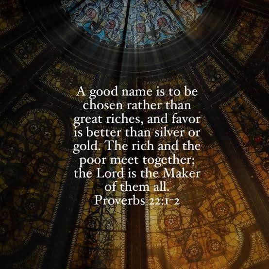 “A good name is to be chosen rather than great riches”, the chapter begins, “and favour is better than silver or gold” (v.1). This resonates both with the affirmation that the person who listens to the teaching of Wisdom “will find favour and good repute in the sight of God and of people” (3:1,4), and, on the contrary, if a person discloses a secret in an argument, “someone who hears you will bring shame upon you, and your ill repute will have no end” (25:9–10).
