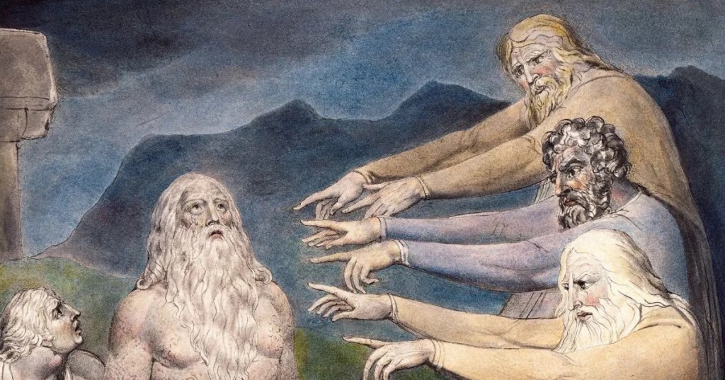 The scene is similar to a Jewish tale that is reported in the Babylonian Talmud, a 6th century CE work. In Shabbat 31a, within a tractate on the sabbath, we read: “It happened that a certain non-Jew came before Shammai and said to him, ‘Make me a convert, on condition that you teach me the whole Torah while I stand on one foot.’ Thereupon he repulsed him with the builder’s cubit that was in his hand. When he went before Hillel, he said to him, ‘What is hateful to you, do not to your neighbour: that is the whole Torah, the rest is the commentary; go and learn it.’”