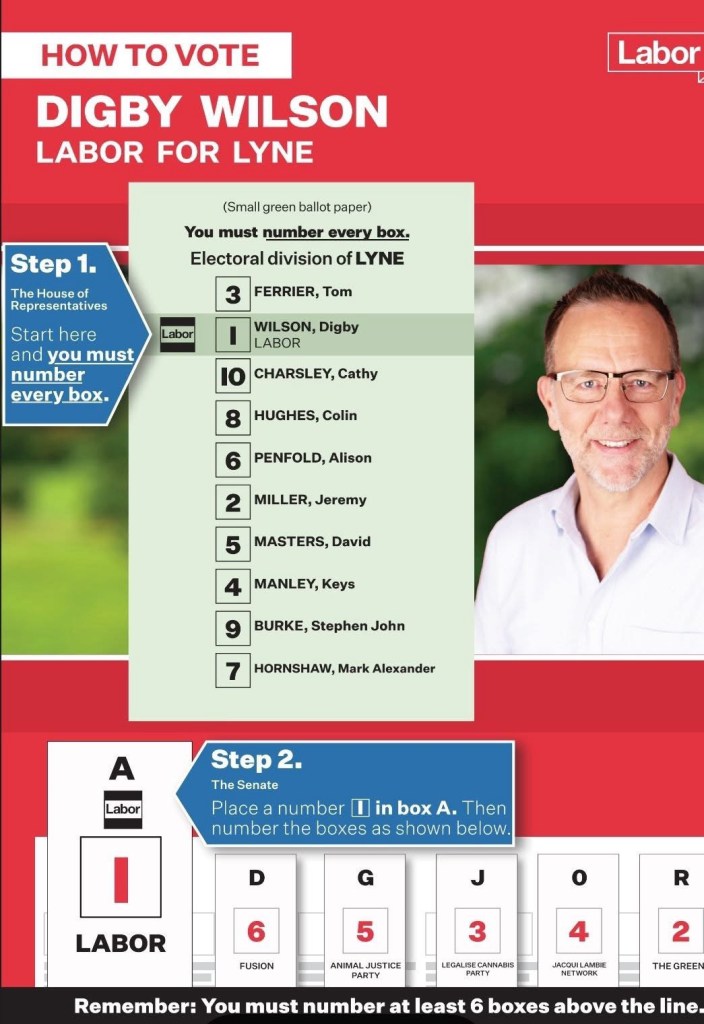 Digby Wilson (Labor) began, declaring that he is always energised by working with people. He spent 30 years working in telecommunications (with Optus and Telstra) before,retiring. He currently volunteers at St Vincent de Paul and is a councillor on Mid Coast Council; in these roles he meets many people struggling to make ends meet.