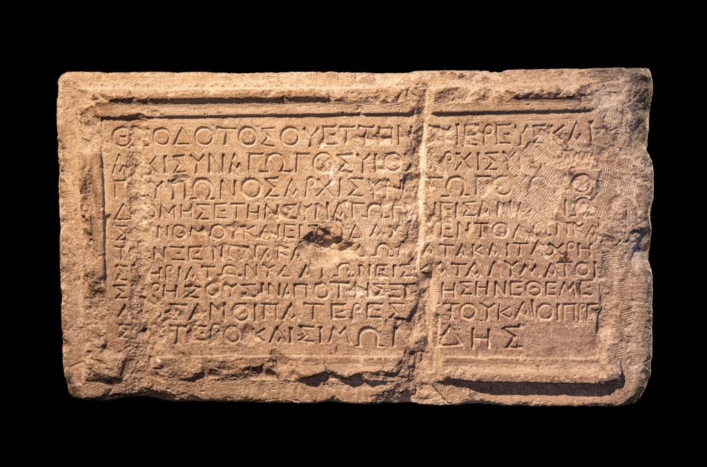 Synagogues also include inscriptions, some identifying the purpose of the building or the name of the benefactor who paid for its building. The Theodotus Inscription is a well-known example. It has ten lines, 75cm x 41cm, and was found in 1913 in a dig in Wadi Hilweh, in East Jerusalem. It was erected by Theodotus, the patron and leader of the synagogue. The inscription identifies him as benefactor and gives details of the whole building complex; it’s an important insight into the fact that ancient synagogues were not just places of worship and teaching, but also places of hospitality for visitors.