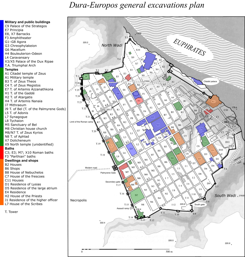 Dura—Europos was a Hellenistic settlement on the eastern edge of Alexander’s empire, in the middle Euphrates. Numerous archaeological remains were discovered in the 1920s and brought to Yale University, where a special room houses numerous inscriptions and building remains. (It was in this room that I did my graduate seminar in Epigraphy, learning how to document and translate Ancient Greek inscriptions.)