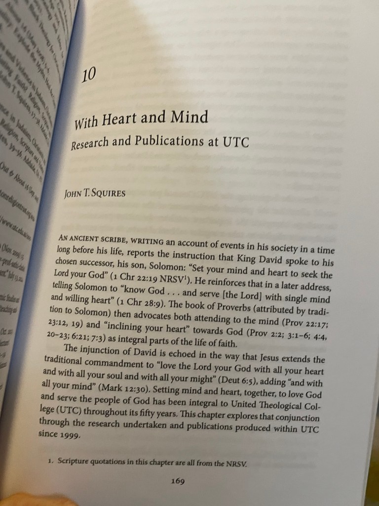 It’s a delight to know that my co-contributors to this book are both those alongside whom I taught for many years, as well as some whom I had taught in their foundational theological studies. It augurs well for the College and the Church that the current Faculty includes UTC graduates Peter Walker (Principal), Sef Carroll (Cross Cultural Ministry and Theology) and Bec Lindsay (Hebrew Scripture/Old Testament). A number of previous faculty members (myself included) had also begun their theological studies at UTC. Whilst there is certainly value in having teachers from beyond this circle—indeed, in some cases, from beyond the Uniting Church—on the faculty, it’s important to have “home-grown” scholars-ministers as well.