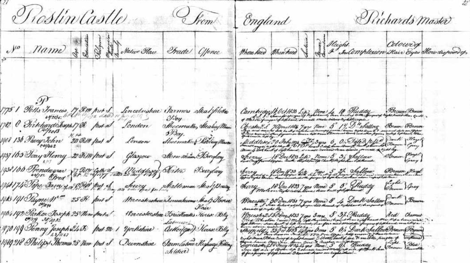 An extract from the ship’s record, listing the convicts on board, including Nathan Taylor.