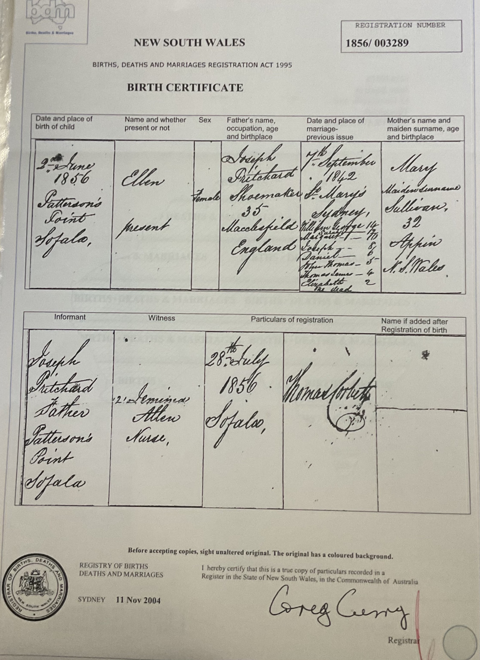 Indeed, records indicate that, over the next decade, a further five children, three daughters and two sons, were born to Elizabeth and Nathan, all in the Richmond River region in northern New South Wales. Sadly, one of those sons, Charles, died in 1860, during the first year of his life; whilst William, the firstborn, had died by drowning three years earlier, in 1857.