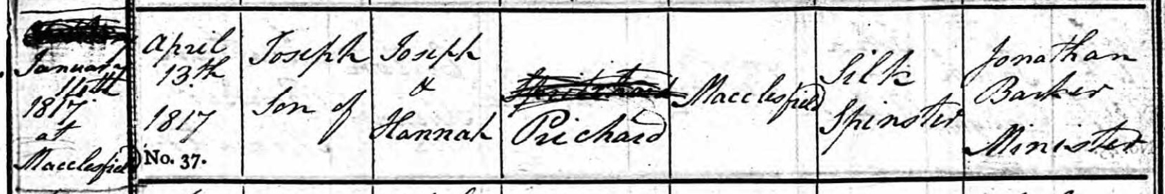 The Chapel register contains the records for the birth of ten children to Joshua and Mary, over the period of 1803 to 1824 (see below). All ten children have biblical names, reflecting the strong religious convictions of these Baptist parents. (Notice the spelling “Nathen”.)