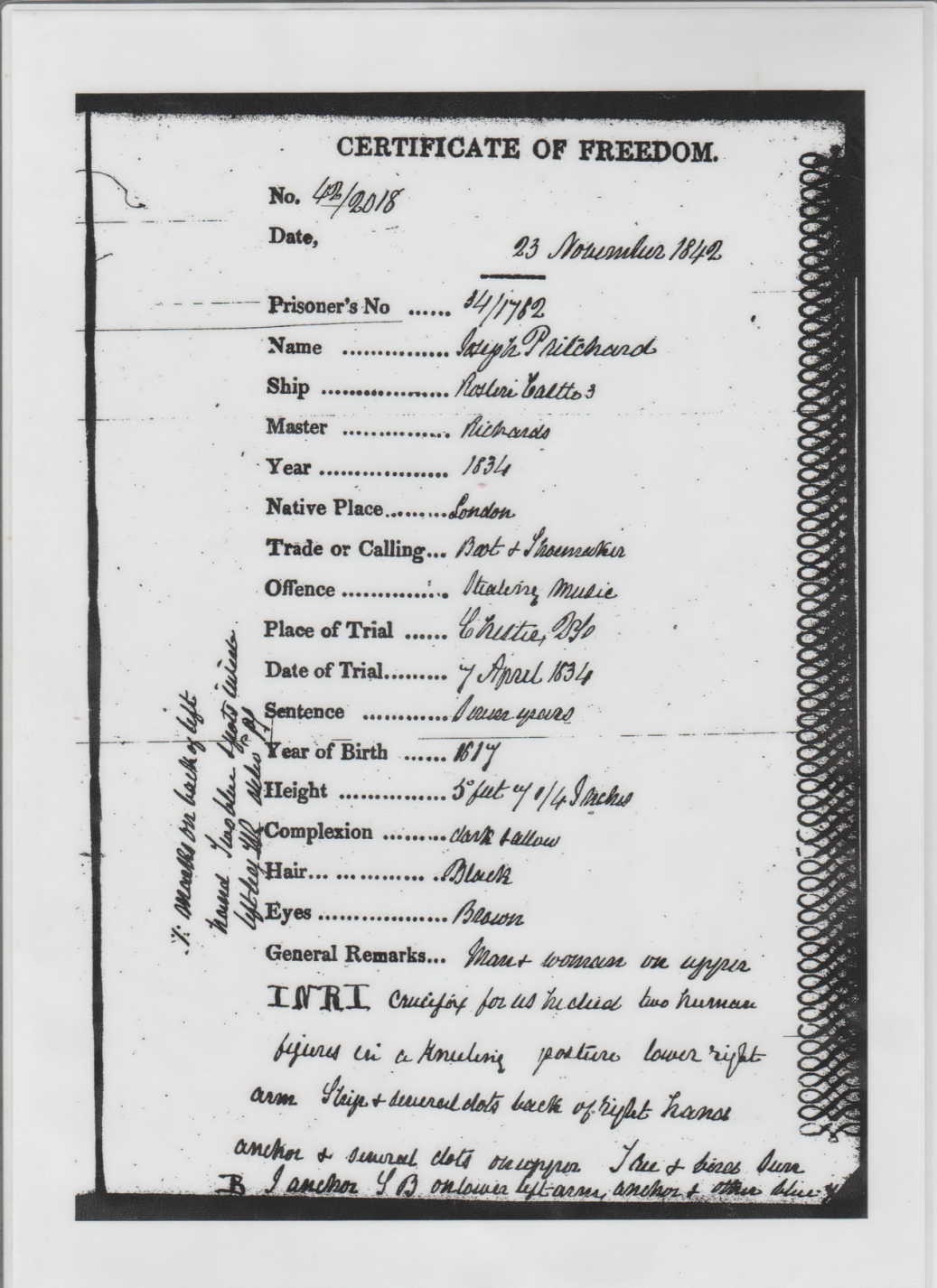 Within a week of arrival in the colony, the prisoners on board the Adelaide were given Tickets of Leave, by order of the Secretary of State. Nathan Taylor’s Ticket of Leave, number 49/1450, was granted on 30 December 1849 (see below).