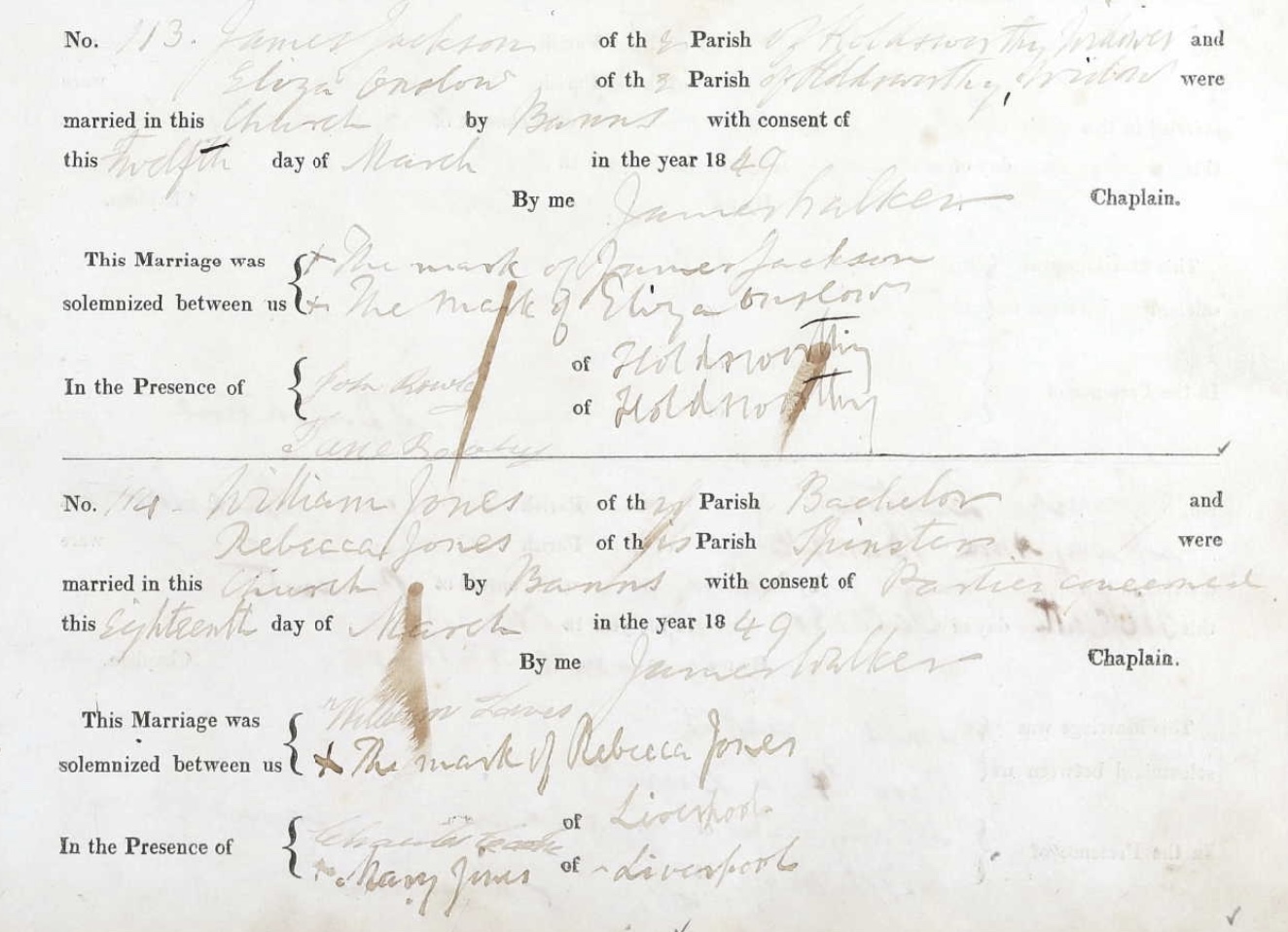 At the age of 24, Nathan Taylor married Elizabeth (Betty) Clegg, the daughter of John and Betty Clegg, at Almondbury, a village to the south-east of Huddersfield. The marriage took place on 15 September 1839; it was conducted by the vicar, George Hargreaves, in the Parish Church, and their place of residence is listed as Almondbury Bank. It seems that the Clegg family were members of the established Church of England.