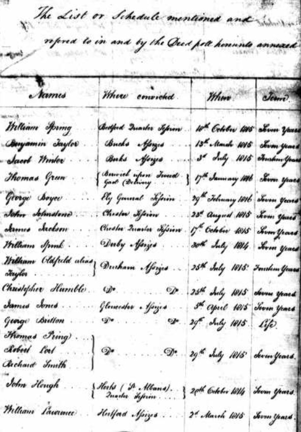 John Johnson, Thomas Waddington, and Nathan Taylor were amongst 302 convicted men who subsequently were transported to the colony of New South Wales on board the ship Adelaide. They were Chartists.