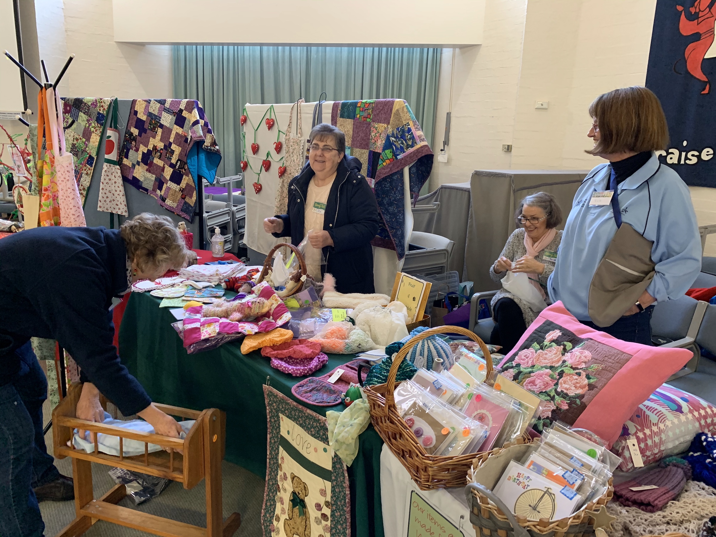 Meanwhile, in and around the church auditorium, the Red Dove Pre-Loved Op Shop was selling second hand clothes, the church was offering Devonshire teas and BBQ sandwiches, the Girls Brigade were selling delicious cakes, reuseable bags to replace single use plastic bags were on sale, as was a wide range of potted plants, and there was a Beeswax stall and assorted other goods for sale.