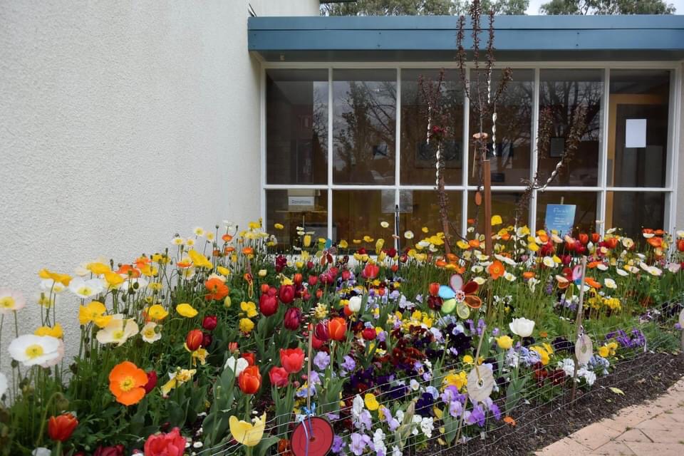 Now, in September, the Tuggeranong Uniting Church is surrounded with colour, as the bulbs burst into flower.