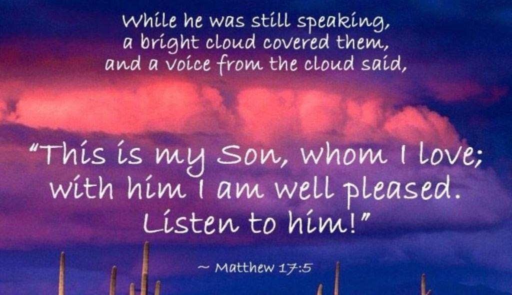 The voice, booming forth from the clouds, “This is my Son, the Beloved; with him I am well pleased; listen to him!” (17:5) seems, at first hearing, to be quoting Hebrew scripture: perhaps the second Psalm, which praises the King of ancient Israel as the one whom God has begotten; or perhaps the song in Isaiah 42, which extols the servant as the one whom God has chosen, or anointed; or perhaps even the oracle in Deuteronomy 18, which instructs the people to listen carefully to the words of the prophet.